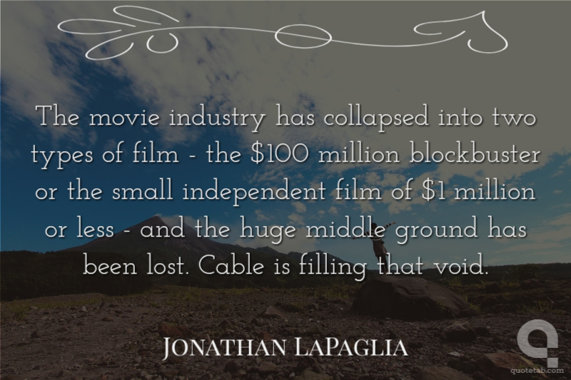 The movie industry has collapsed into two types of film - the $100 million blockbuster or the small independent film of $1 million or less - and the huge middle ground has been lost. Cable is filling that void.
