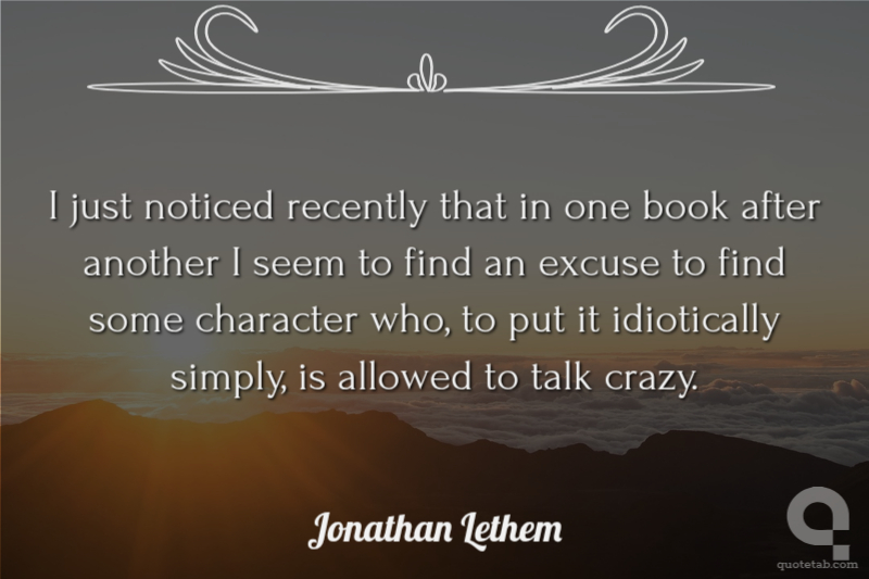 I just noticed recently that in one book after another I seem to find an excuse to find some character who, to put it idiotically simply, is allowed to talk crazy.