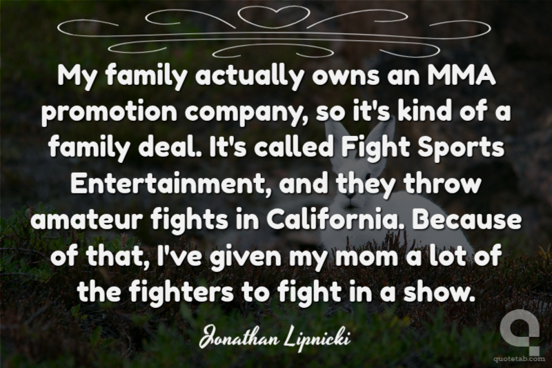 My family actually owns an MMA promotion company, so it's kind of a family deal. It's called Fight Sports Entertainment, and they throw amateur fights in California. Because of that, I've given my mom a lot of the fighters to fight in a show.