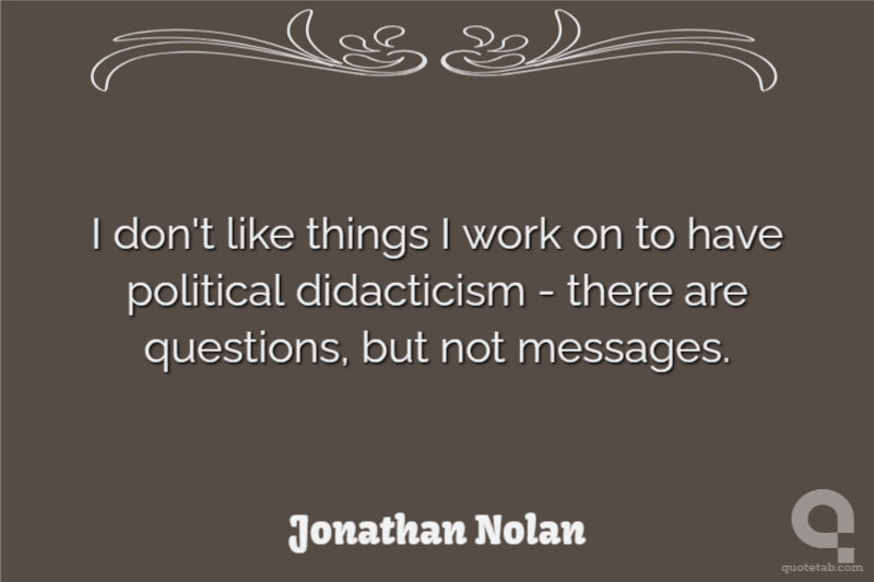 I don't like things I work on to have political didacticism - there are questions, but not messages.