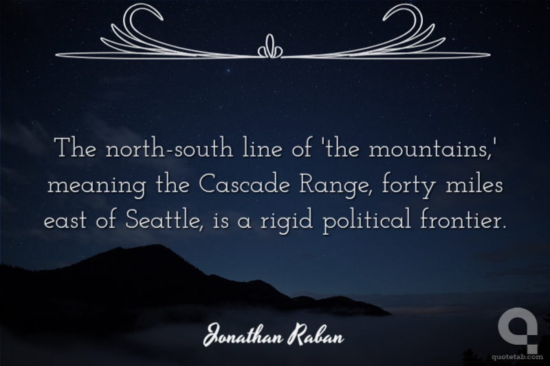 The north-south line of 'the mountains,' meaning the Cascade Range, forty miles east of Seattle, is a rigid political frontier.
