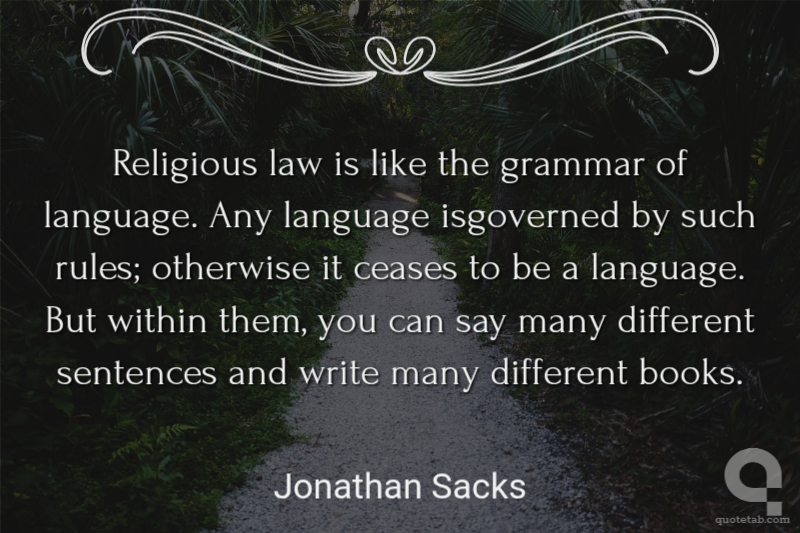 Religious law is like the grammar of language. Any language isgoverned by such rules; otherwise it ceases to be a language. But within them, you can say many different sentences and write many different books.