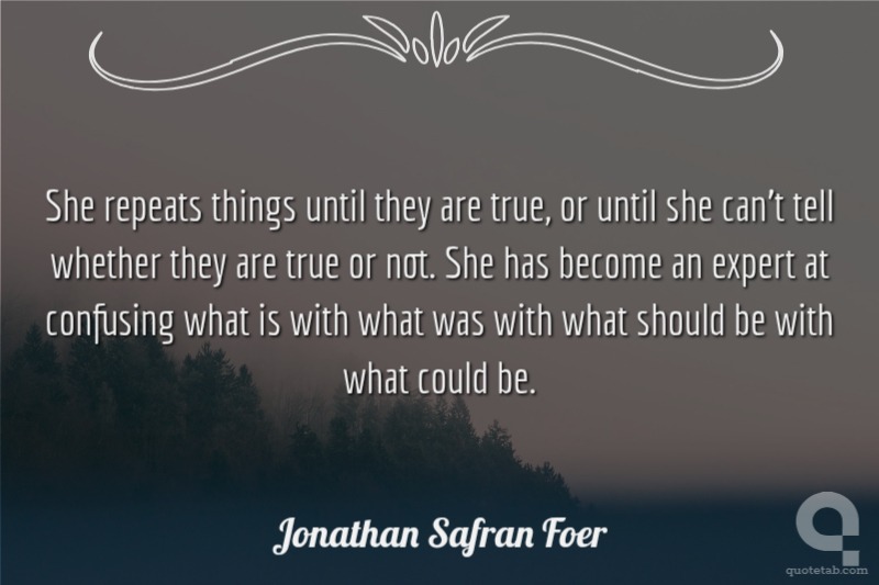 She repeats things until they are true, or until she can't tell whether they are true or not. She has become an expert at confusing what is with what was with what should be with what could be.