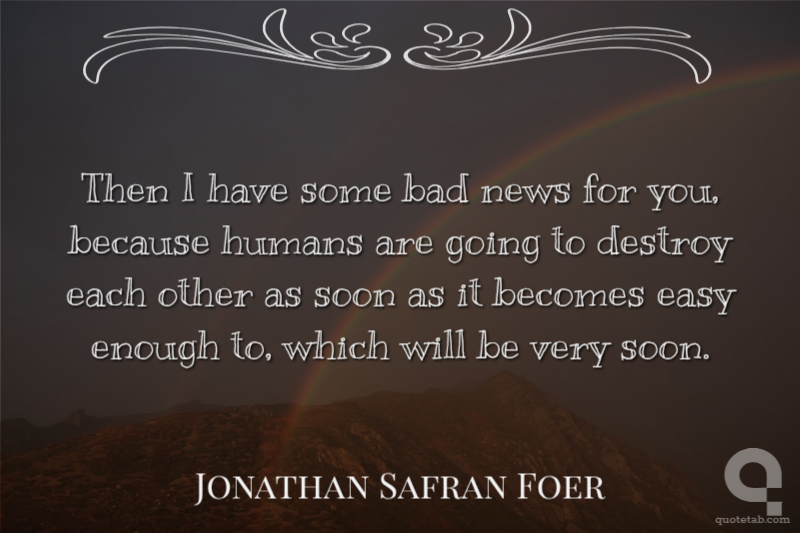 Then I have some bad news for you, because humans are going to destroy each other as soon as it becomes easy enough to, which will be very soon.