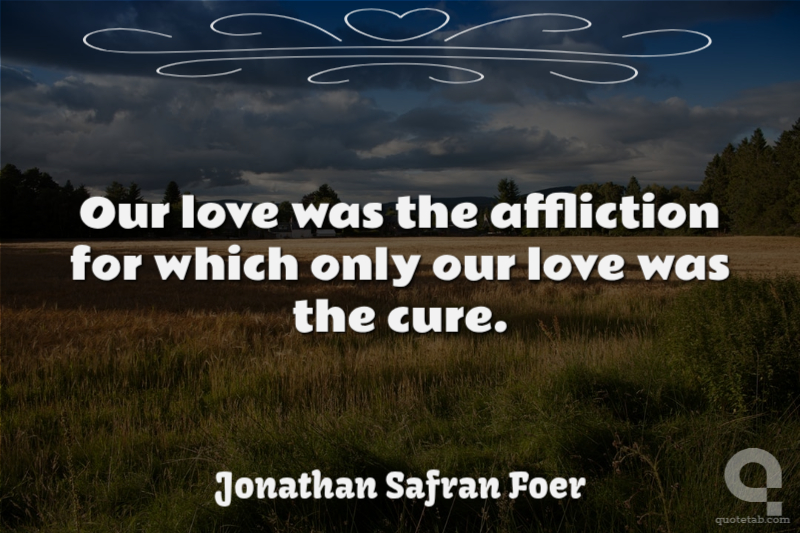 We burned with love for ourselves, all of us, starters of the fire we suffered- our love was the affliction for which only our love was the cure.