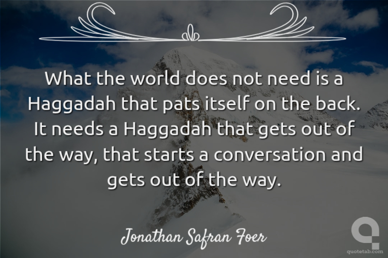 What the world does not need is a Haggadah that pats itself on the back. It needs a Haggadah that gets out of the way, that starts a conversation and gets out of the way.