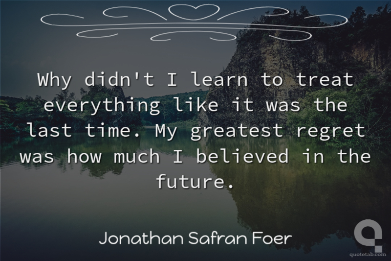 Why didn't I learn to treat everything like it was the last time. My greatest regret was how much I believed in the future.
