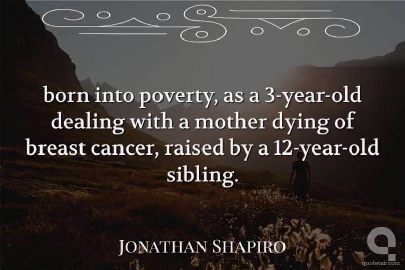 born into poverty, as a 3-year-old dealing with a mother dying of breast cancer, raised by a 12-year-old sibling.