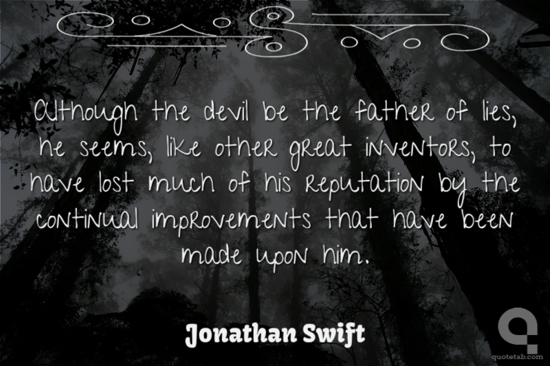Although the devil be the father of lies, he seems, like other great inventors, to have lost much of his reputation by the continual improvements that have been made upon him.