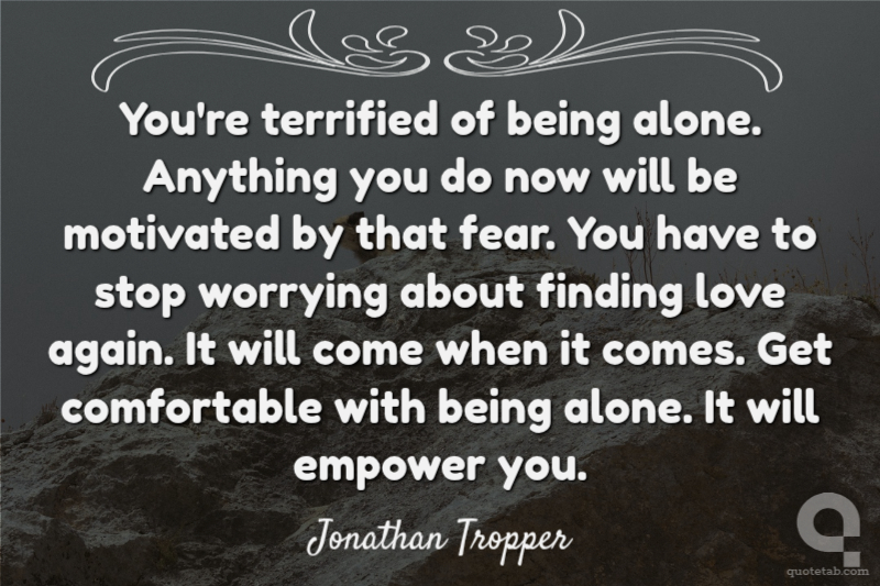 You're terrified of being alone. Anything you do now will be motivated by that fear. You have to stop worrying about finding love again. It will come when it comes. Get comfortable with being alone. It will empower you.