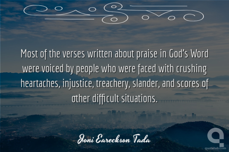 Most of the verses written about praise in God’s Word were voiced by people who were faced with crushing heartaches, injustice, treachery, slander, and scores of other difficult situations.