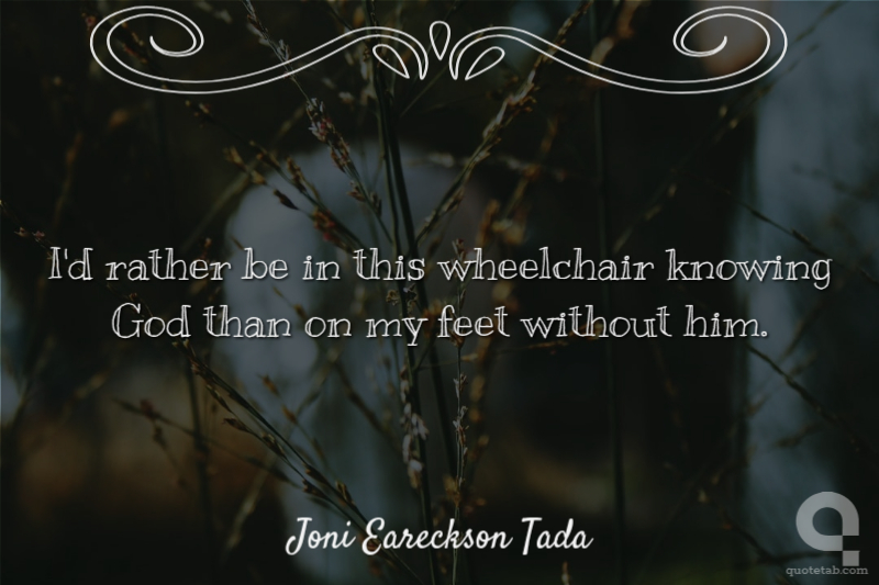 I'd rather be in this wheelchair knowing God than on my feet without him.