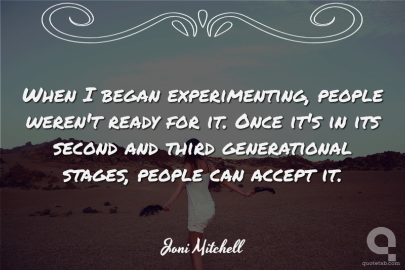 When I began experimenting, people weren't ready for it. Once it's in its second and third generational stages, people can accept it.