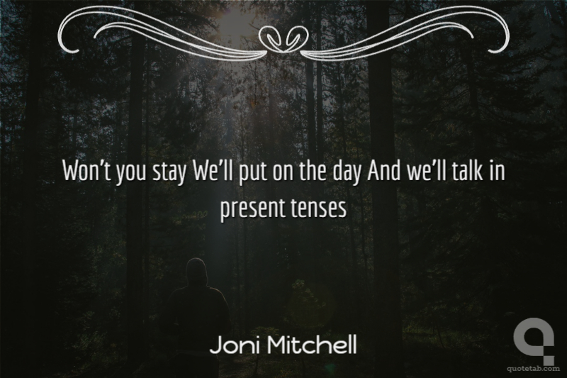 Won't you stay We'll put on the day And we'll talk in present tenses