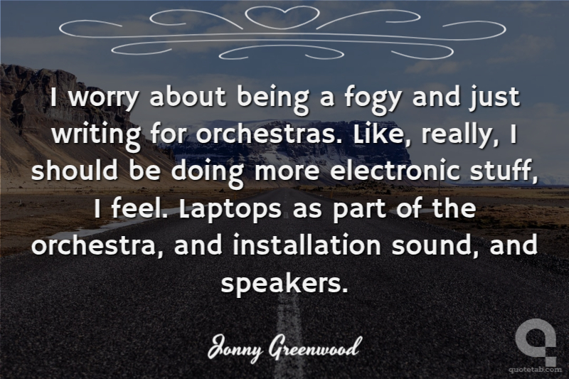 I worry about being a fogy and just writing for orchestras. Like, really, I should be doing more electronic stuff, I feel. Laptops as part of the orchestra, and installation sound, and speakers.