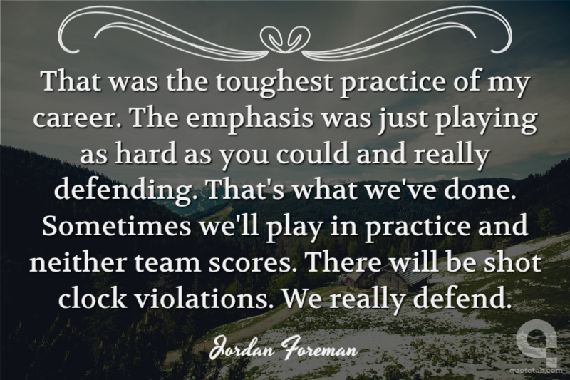 That was the toughest practice of my career. The emphasis was just playing as hard as you could and really defending. That's what we've done. Sometimes we'll play in practice and neither team scores. There will be shot clock violations. We really defend.