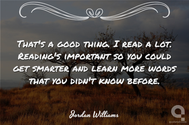 That's a good thing. I read a lot. Reading's important so you could get smarter and learn more words that you didn't know before.
