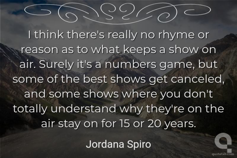 I think there's really no rhyme or reason as to what keeps a show on air. Surely it's a numbers game, but some of the best shows get canceled, and some shows where you don't totally understand why they're on the air stay on for 15 or 20 years.