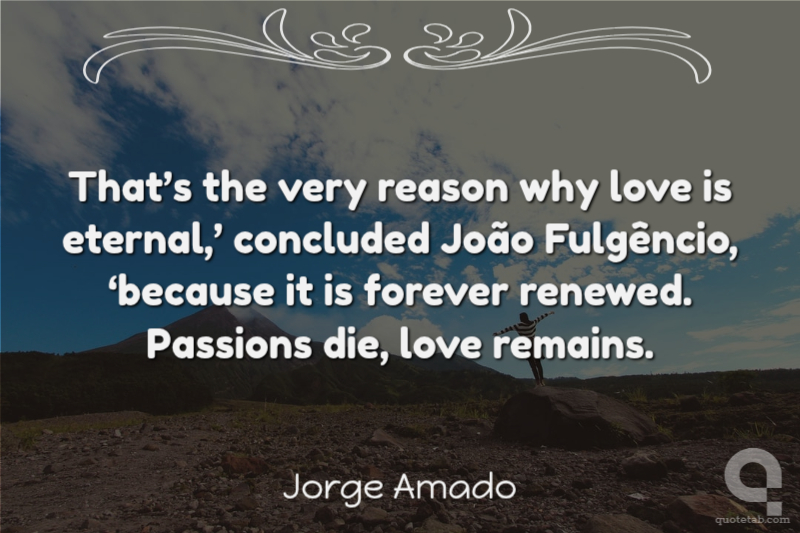 That’s the very reason why love is eternal,’ concluded João Fulgêncio, ‘because it is forever renewed. Passions die, love remains.