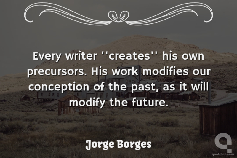 Every writer ''creates'' his own precursors. His work modifies our conception of the past, as it will modify the future.