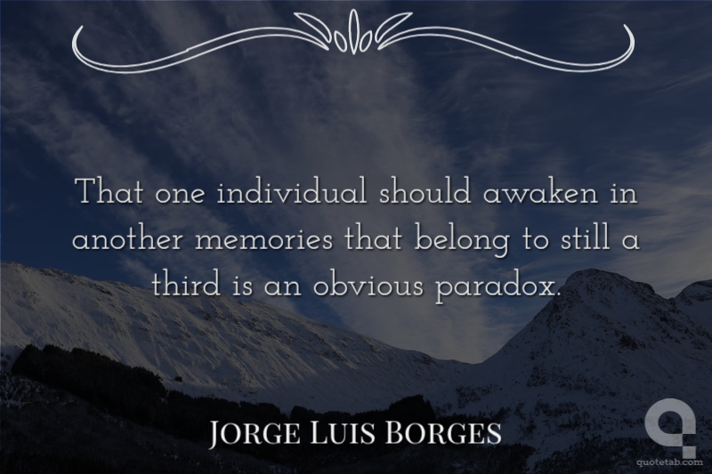 That one individual should awaken in another memories that belong to still a third is an obvious paradox.