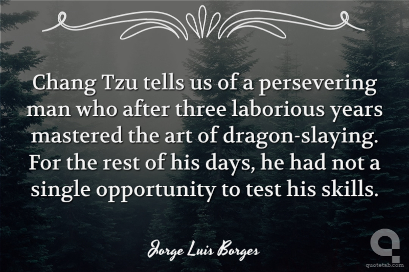 Chang Tzu tells us of a persevering man who after three laborious years mastered the art of dragon-slaying. For the rest of his days, he had not a single opportunity to test his skills.