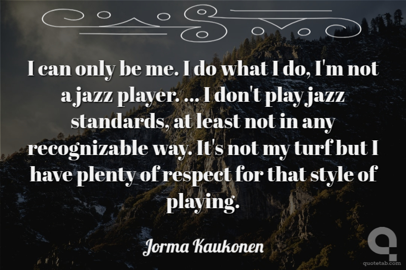 I can only be me. I do what I do, I'm not a jazz player. ... I don't play jazz standards, at least not in any recognizable way. It's not my turf but I have plenty of respect for that style of playing.
