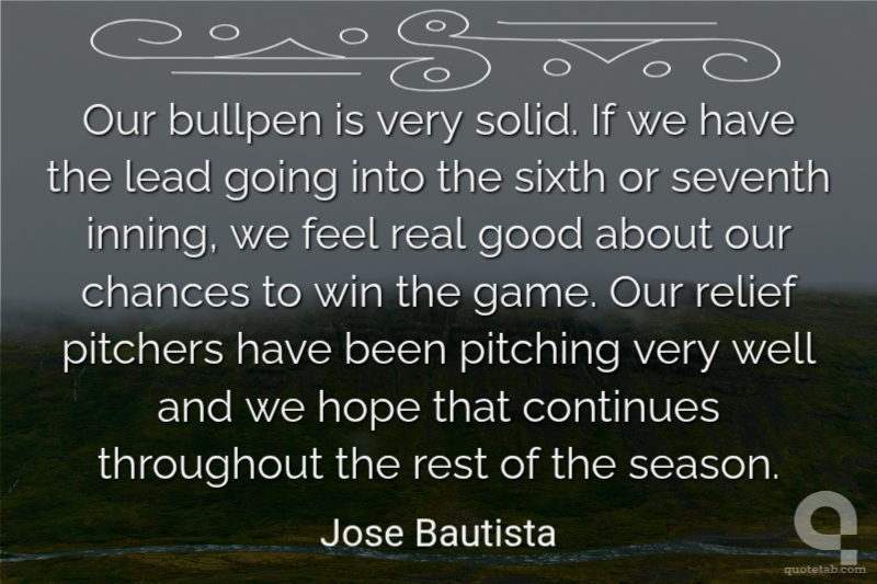 Our bullpen is very solid. If we have the lead going into the sixth or seventh inning, we feel real good about our chances to win the game. Our relief pitchers have been pitching very well and we hope that continues throughout the rest of the season.