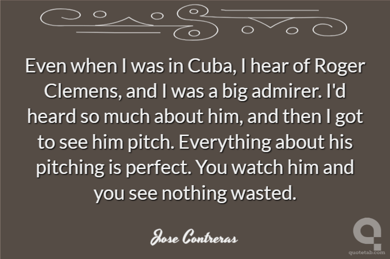 Even when I was in Cuba, I hear of Roger Clemens, and I was a big admirer. I'd heard so much about him, and then I got to see him pitch. Everything about his pitching is perfect. You watch him and you see nothing wasted.