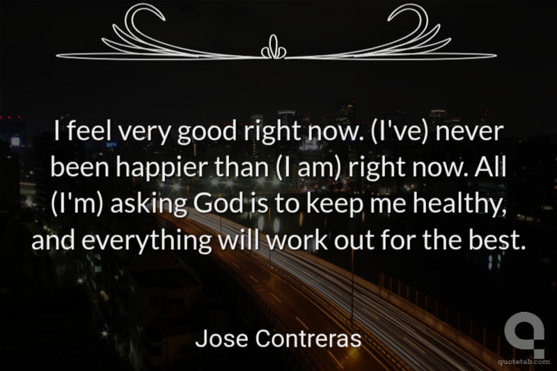 I feel very good right now. (I've) never been happier than (I am) right now. All (I'm) asking God is to keep me healthy, and everything will work out for the best.