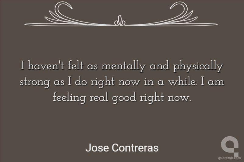 I haven't felt as mentally and physically strong as I do right now in a while. I am feeling real good right now.