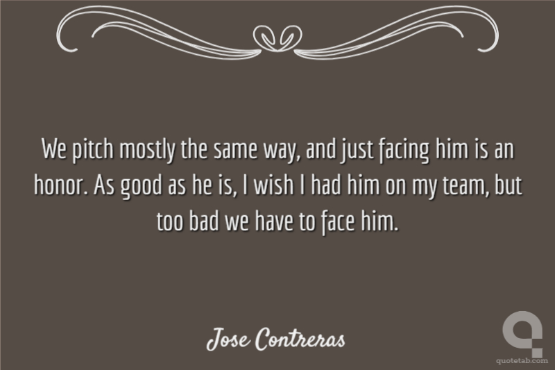 We pitch mostly the same way, and just facing him is an honor. As good as he is, I wish I had him on my team, but too bad we have to face him.