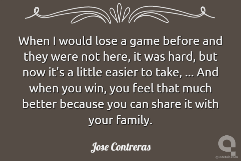 When I would lose a game before and they were not here, it was hard, but now it's a little easier to take, ... And when you win, you feel that much better because you can share it with your family.