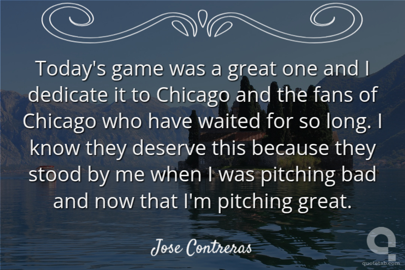 Today's game was a great one and I dedicate it to Chicago and the fans of Chicago who have waited for so long. I know they deserve this because they stood by me when I was pitching bad and now that I'm pitching great.