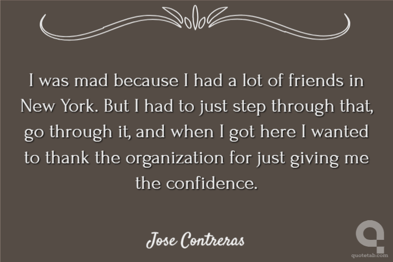 I was mad because I had a lot of friends in New York. But I had to just step through that, go through it, and when I got here I wanted to thank the organization for just giving me the confidence.