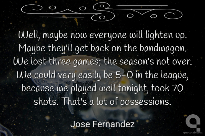 Well, maybe now everyone will lighten up. Maybe they'll get back on the bandwagon. We lost three games; the season's not over. We could very easily be 5-0 in the league, because we played well tonight, took 70 shots. That's a lot of possessions.