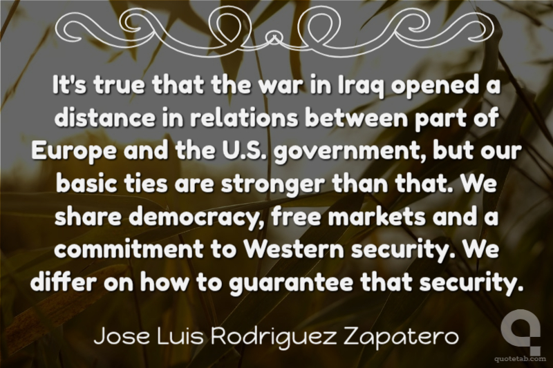 It's true that the war in Iraq opened a distance in relations between part of Europe and the U.S. government, but our basic ties are stronger than that. We share democracy, free markets and a commitment to Western security. We differ on how to guarantee that security.