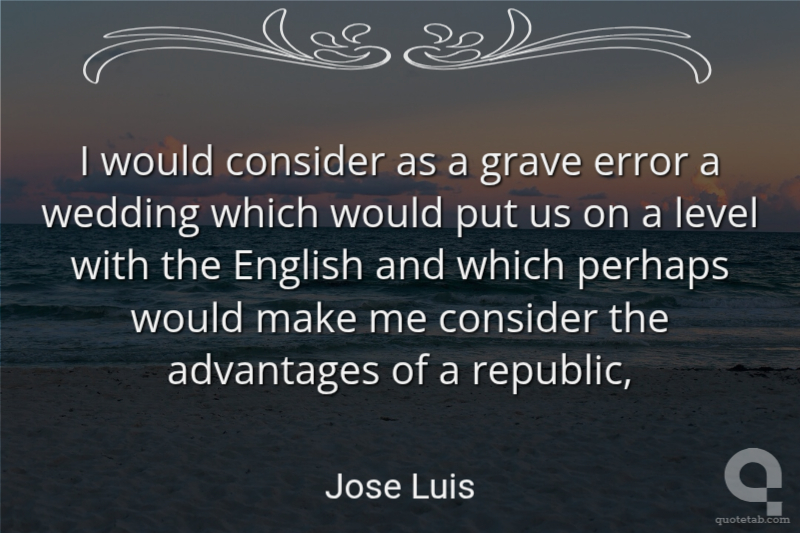 I would consider as a grave error a wedding which would put us on a level with the English and which perhaps would make me consider the advantages of a republic,