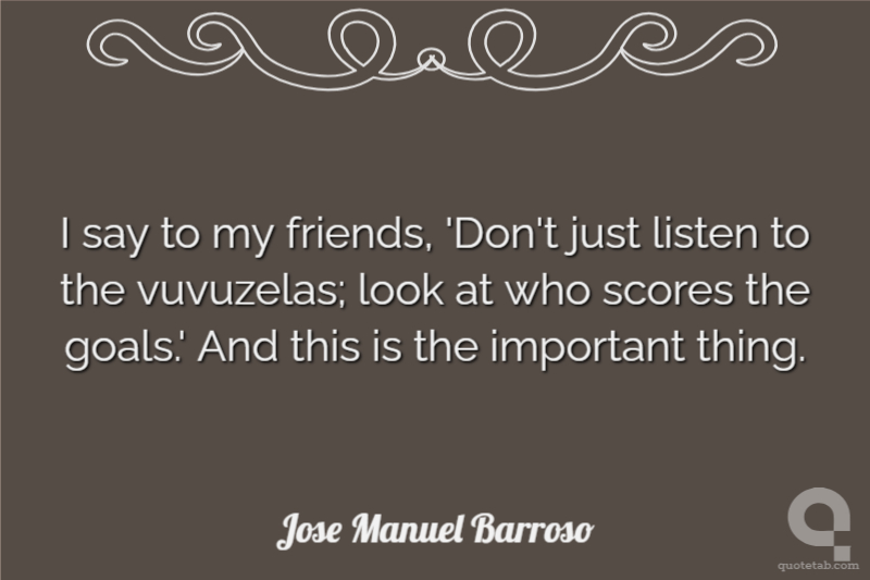 I say to my friends, 'Don't just listen to the vuvuzelas; look at who scores the goals.' And this is the important thing.