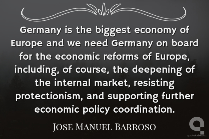 Germany is the biggest economy of Europe and we need Germany on board for the economic reforms of Europe, including, of course, the deepening of the internal market, resisting protectionism, and supporting further economic policy coordination.