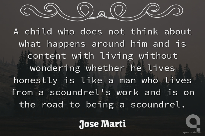 A child who does not think about what happens around him and is content with living without wondering whether he lives honestly is like a man who lives from a scoundrel's work and is on the road to being a scoundrel.