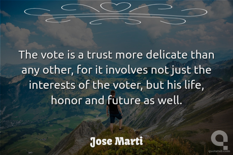 The vote is a trust more delicate than any other, for it involves not just the interests of the voter, but his life, honor and future as well.