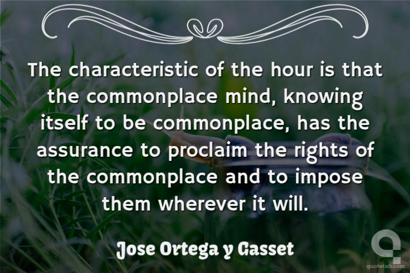 The characteristic of the hour is that the commonplace mind, knowing itself to be commonplace, has the assurance to proclaim the rights of the commonplace and to impose them wherever it will.