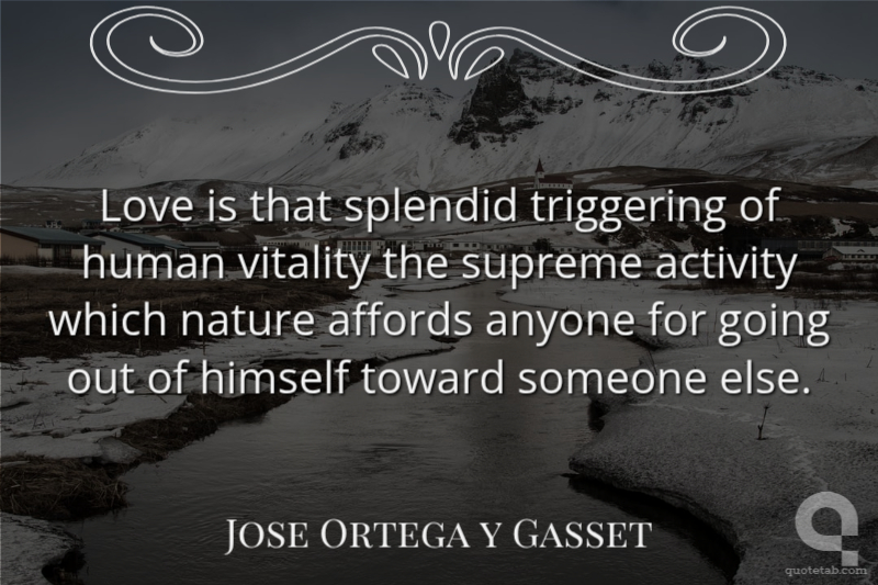 Love is that splendid triggering of human vitality the supreme activity which nature affords anyone for going out of himself toward someone else.