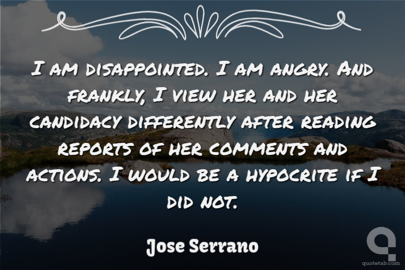 I am disappointed. I am angry. And frankly, I view her and her candidacy differently after reading reports of her comments and actions. I would be a hypocrite if I did not.