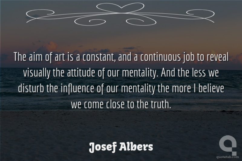 The aim of art is a constant, and a continuous job to reveal visually the attitude of our mentality. And the less we disturb the influence of our mentality the more I believe we come close to the truth.