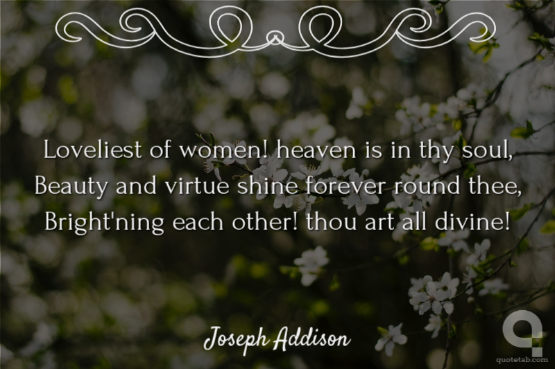 Loveliest of women! heaven is in thy soul, Beauty and virtue shine forever round thee, Bright'ning each other! thou art all divine!