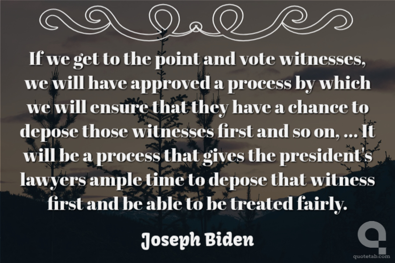 If we get to the point and vote witnesses, we will have approved a process by which we will ensure that they have a chance to depose those witnesses first and so on, ... It will be a process that gives the president's lawyers ample time to depose that witness first and be able to be treated fairly.