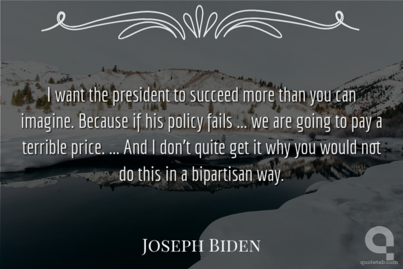 I want the president to succeed more than you can imagine. Because if his policy fails ... we are going to pay a terrible price. ... And I don't quite get it why you would not do this in a bipartisan way.
