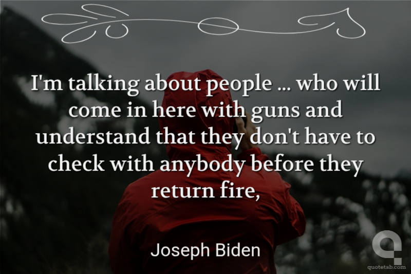 I'm talking about people ... who will come in here with guns and understand that they don't have to check with anybody before they return fire,